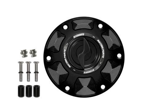 The new Accossato fuel tank cap is a high-quality accessory designed for motorbikes. Here are some details about this cap: Attractive design: The cap features a new, attractive design. Quick closing: It is equipped with a quick closing pawl, which allows the tank to be opened and closed efficiently. Material: The cap is made entirely of CNC machined aluminium, ensuring robustness and durability.
